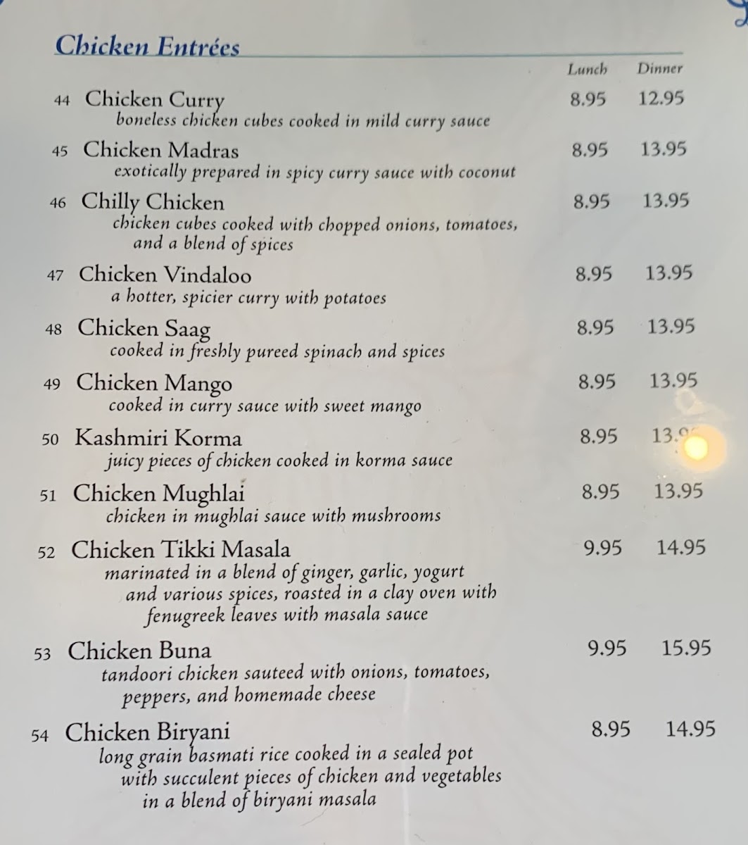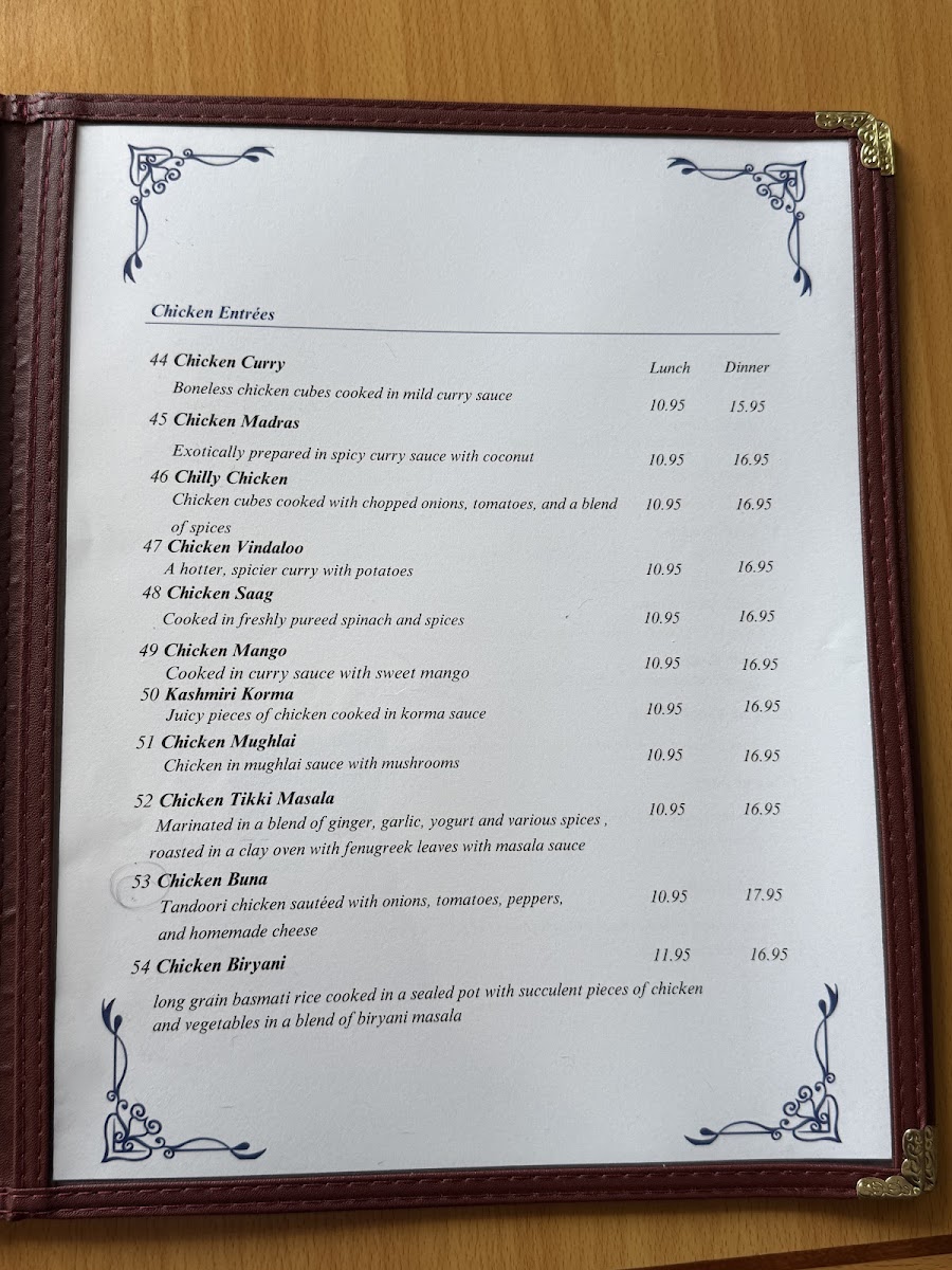 Swad Tandoori in New London, CT, offers an authentic and vibrant Indian dining experience. Their menu highlights a rich variety of chicken entrees, each crafted with distinct, bold flavors. From the creamy, tomato-based Chicken Tikka Masala to the fiery and tangy Chicken Vindaloo, every dish showcases skillful balance of spices and textures. The Chicken Mughlai stands out with its luscious mushroom sauce, while the sweetly spiced Chicken Mango is a delightful treat.